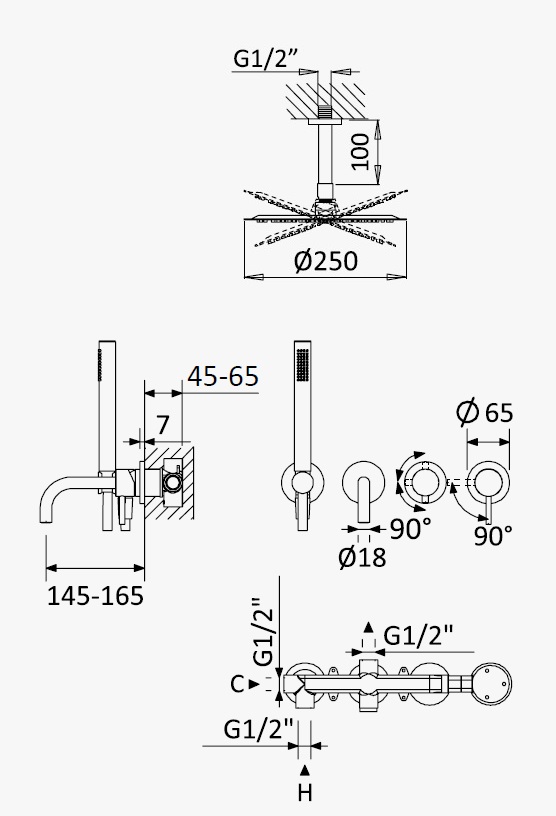 Wymiary:Średnica deszczownicy: 250 mm