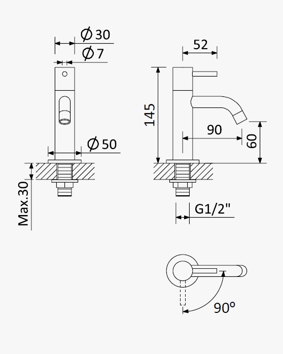 Bruma Lusitano Bateria umywalkowa stojąca "Zimna woda" z korkiem Push-open Night sky 1073831NS
