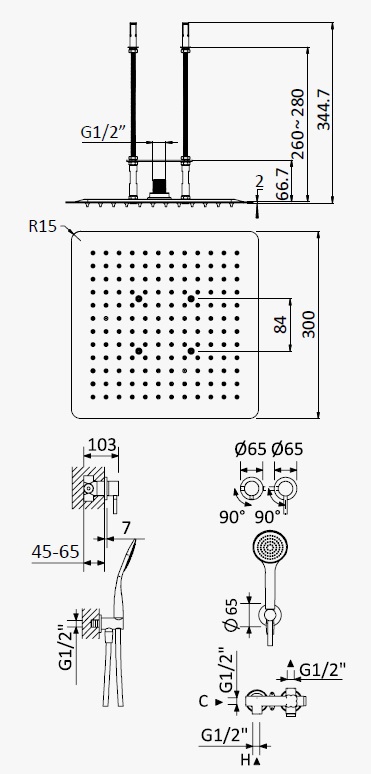 Bruma Lusitano Zestaw prysznicowy podtynkowy z deszczownicą 300x300 mm i słuchawką Chrom 1074211CR