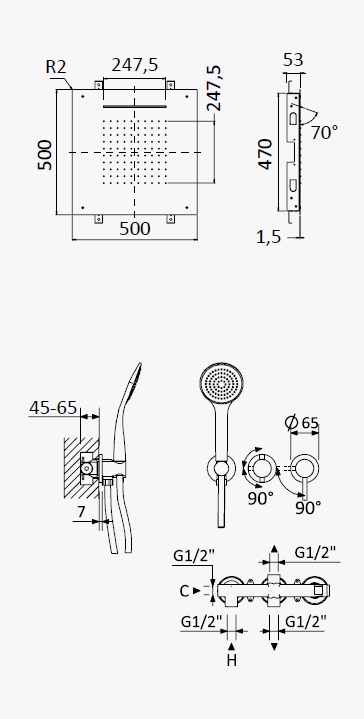 Wymiary:Szerokość deszczownicy: 500x500 mm