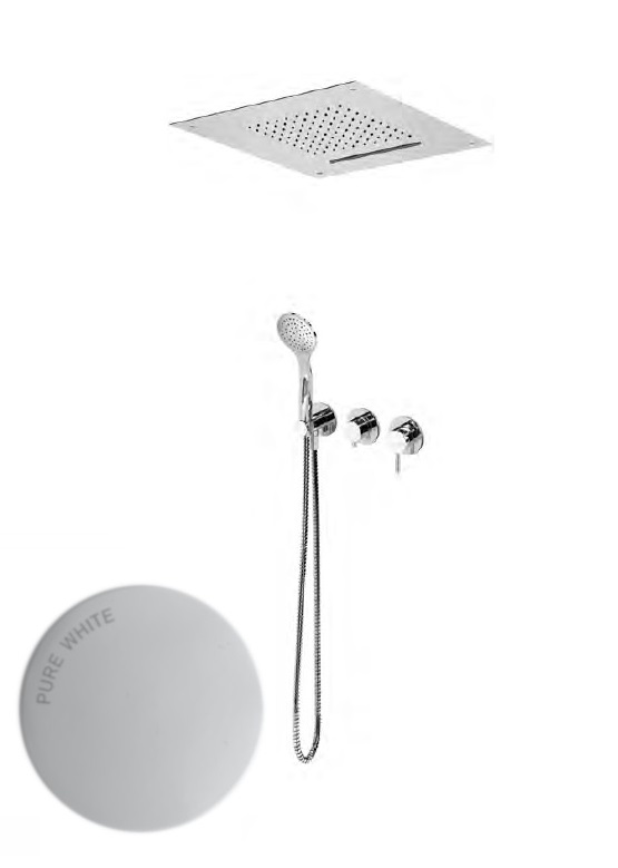 Bruma Lusitano Zestaw prysznicowy podtynkowy z deszczownicą 500x500 mm i słuchawka prysznicowa Pure White 1074261PW