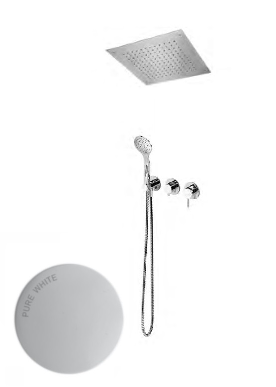 Bruma Lusitano Zestaw prysznicowy podtynkowy z deszczownicą 500x500 mm i słuchawka prysznicowa Pure White 1074271PW