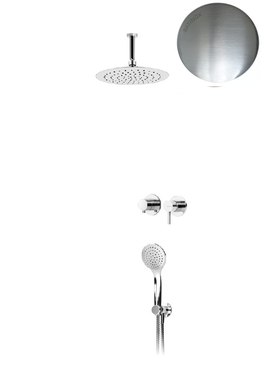 Bruma Lusitano Zestaw natryskowy podtynkowy z deszczownicą Ø 250 mm na ramienieniu sufitowym i słuchawką prysznicową Satinox 1076509ST