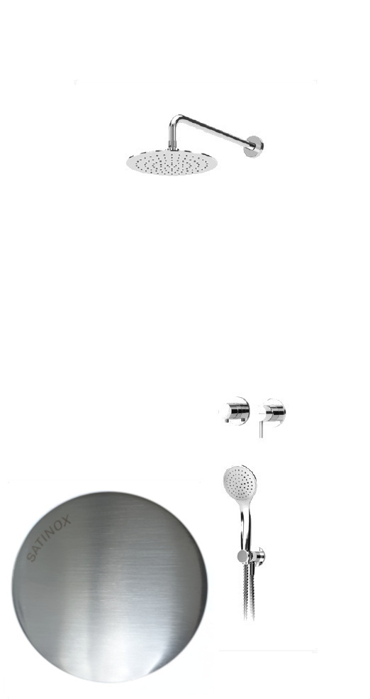 Bruma Lusitano Zestaw natryskowy podtynkowy z deszczownicą ścienna Ø 250 mm i słuchawką prysznicową Satinox 1077503ST