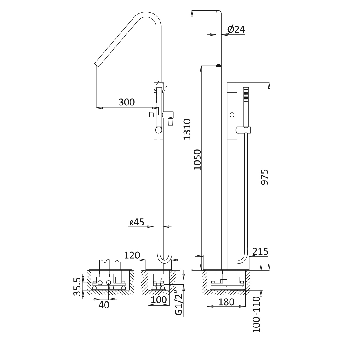 Bruma Lusa Bateria wannowo-natryskowa wolnostojąca Sunrise 1010701SR