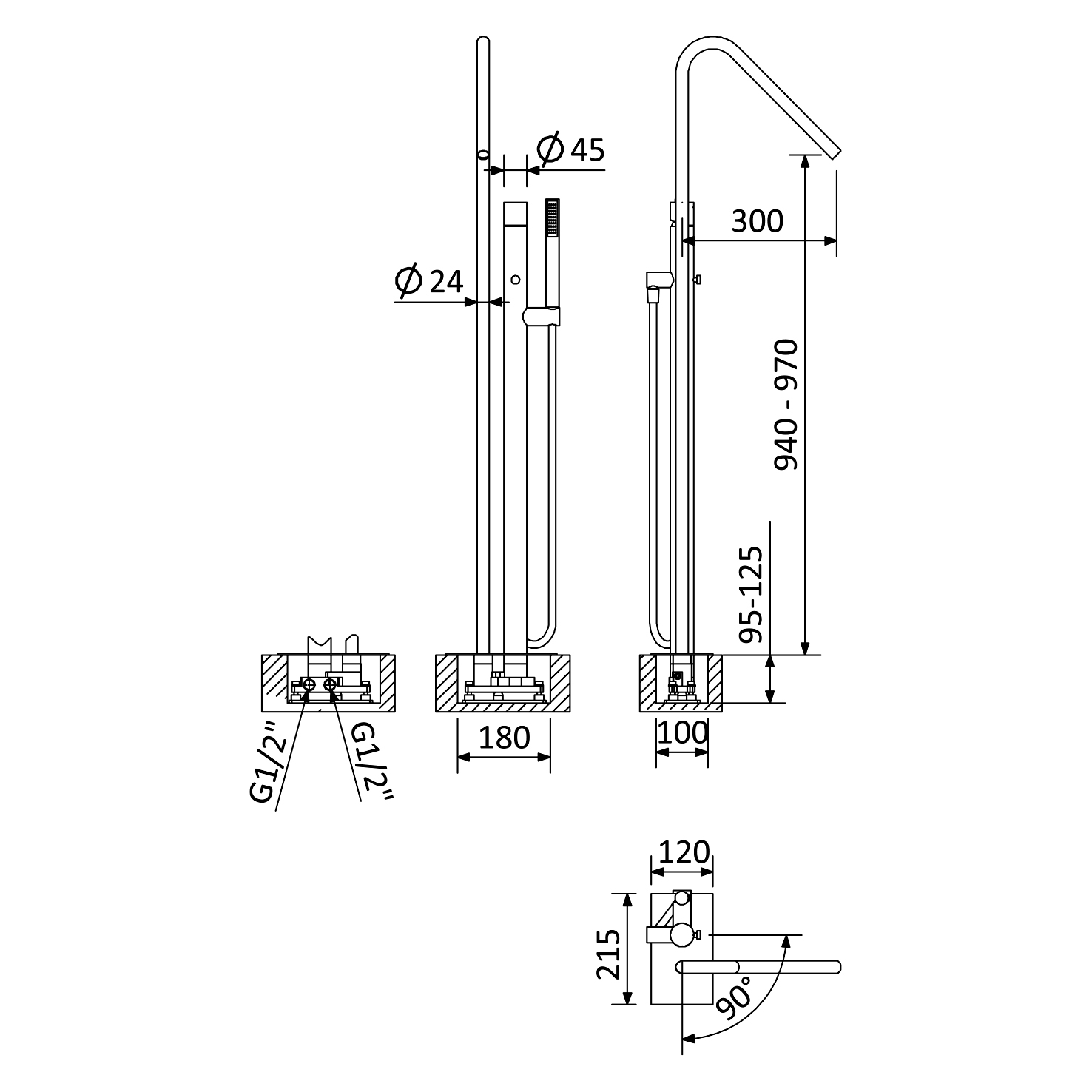 Bruma Lusa Bateria wannowo-natryskowa wolnostojąca Morning Mist 1010702MM