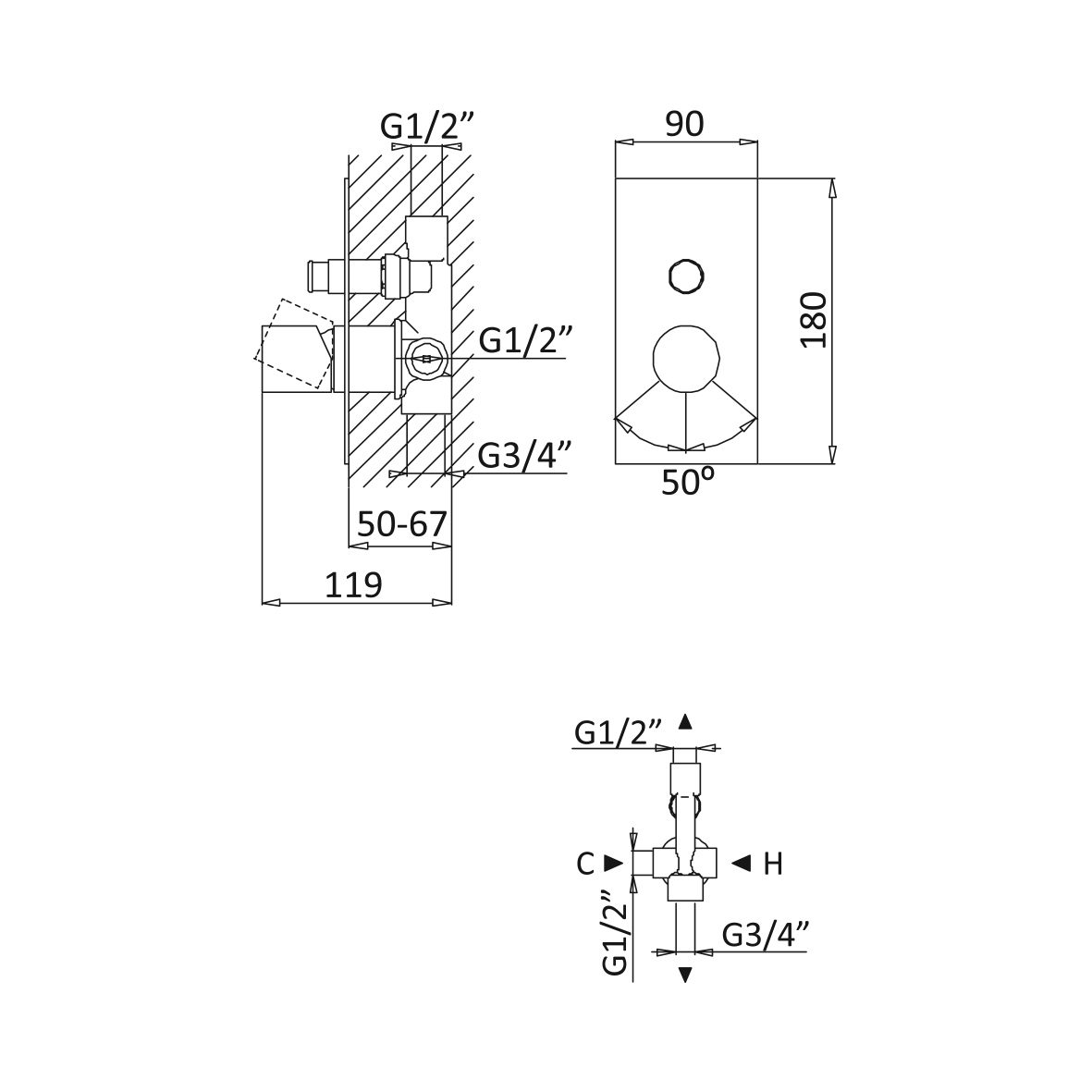 Bateria podtynkowa z elementem podtynkowym w zestawie.