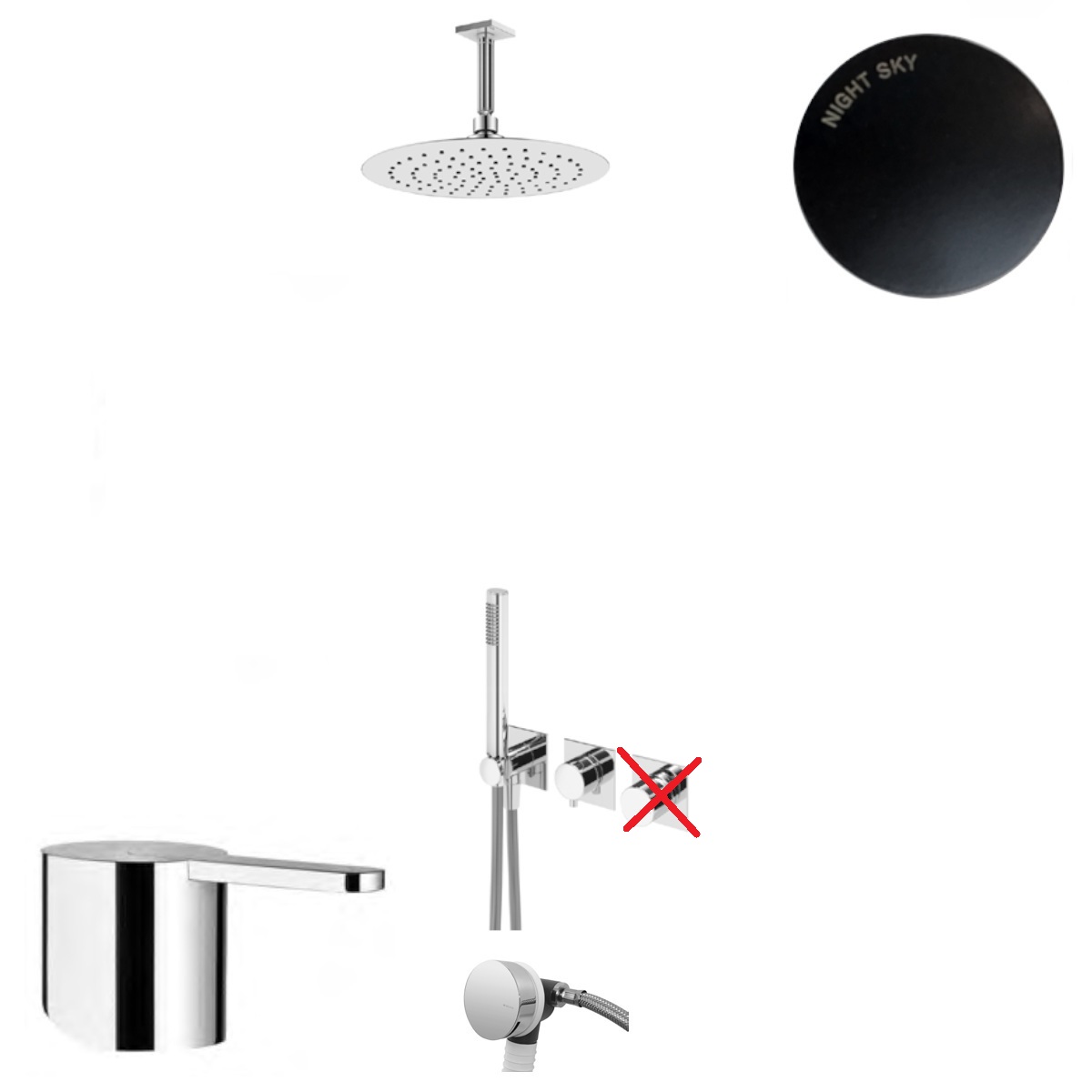 Bruma Lusa Zestaw wannowo-natryskowy podtynkowy z deszczownicą Ø 250 mm z odpływem Night Sky 1013601NS