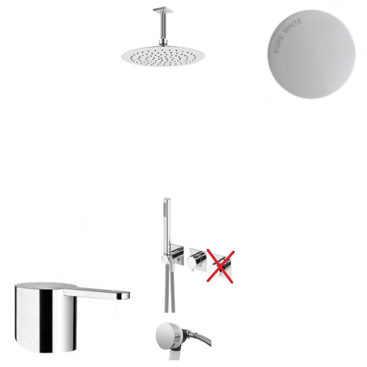 Bruma Lusa Zestaw wannowo-natryskowy podtynkowy z deszczownicą Ø 250 mm z odpływem Pure White 1013601PW