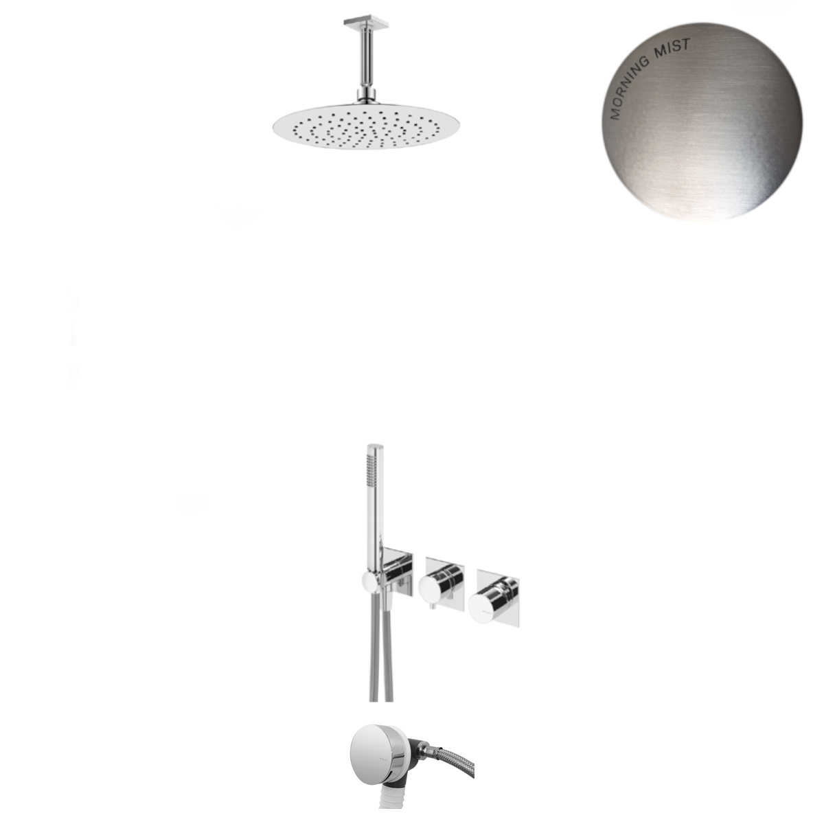 Bruma Lusa Zestaw wannowo-natryskowy podtynkowy z deszczownicą Ø 250 mm z odpływem Morning Mist 1013602MM