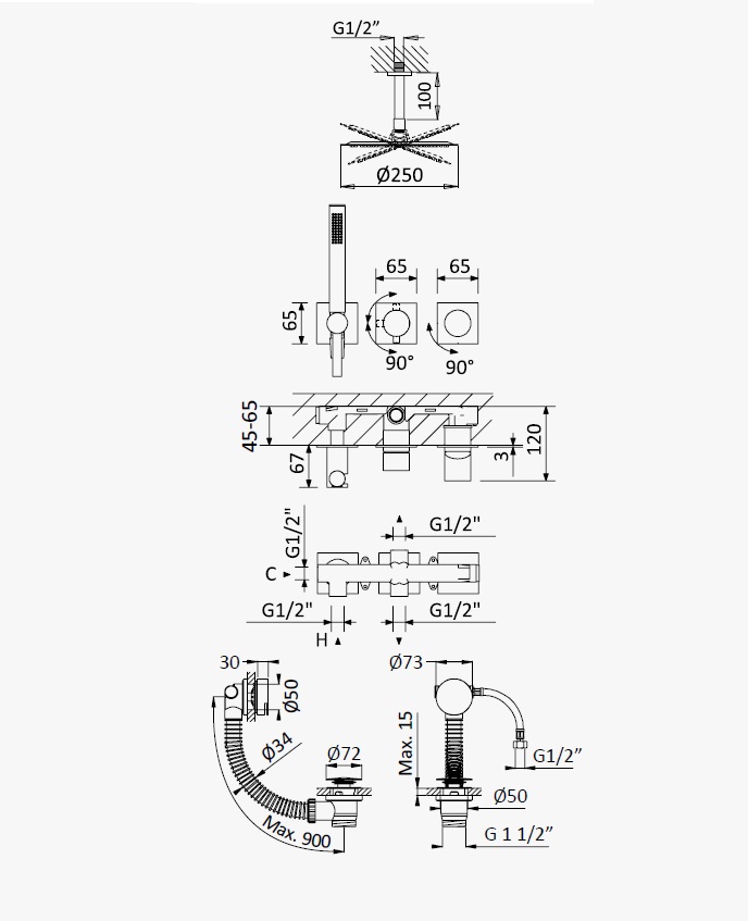 Długość odpływu: 900 mm