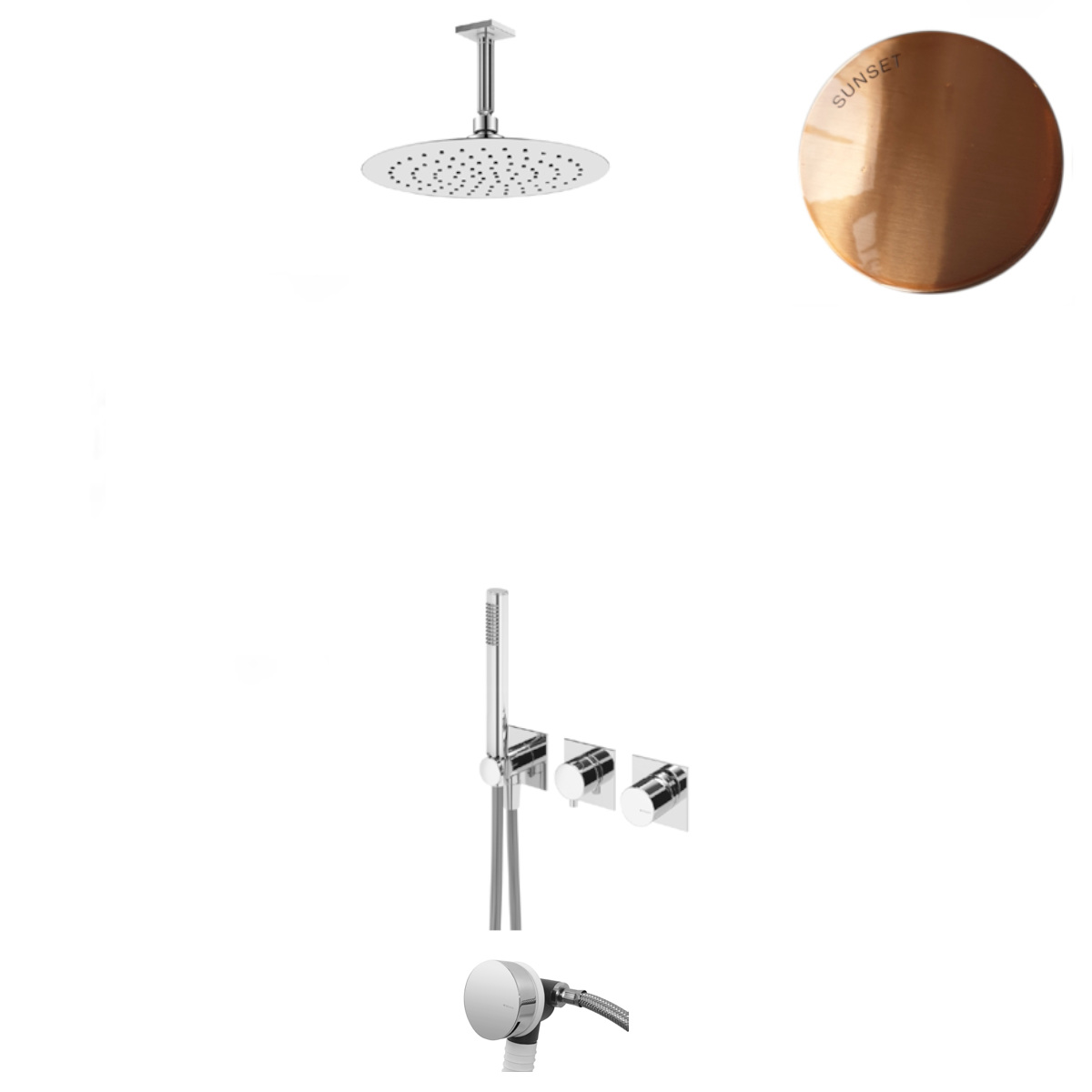 Bruma Lusa Zestaw wannowo-natryskowy podtynkowy z deszczownicą Ø 250 mm z odpływem Sunset 1013602SS