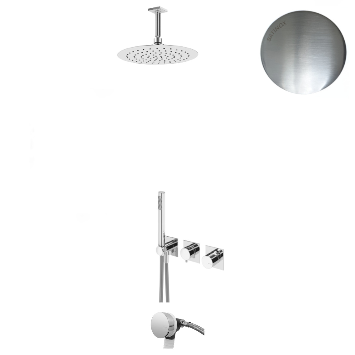 Bruma Lusa Zestaw wannowo-natryskowy podtynkowy z deszczownicą Ø 250 mm z odpływem Satinox 1013602ST