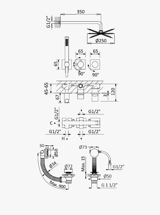 Długość odpływu: 900 mm