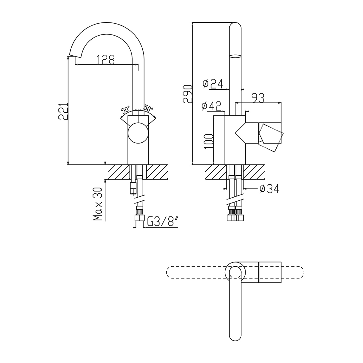 Bateria umywalkowa bez korka, z obrotową wylewką