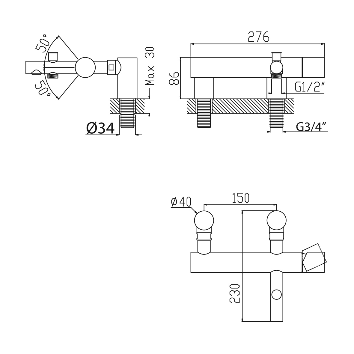 Bruma Lusa Bateria wannowo-prysznicowa 2-otworowa na brzeg wanny Sunset 1017201SS