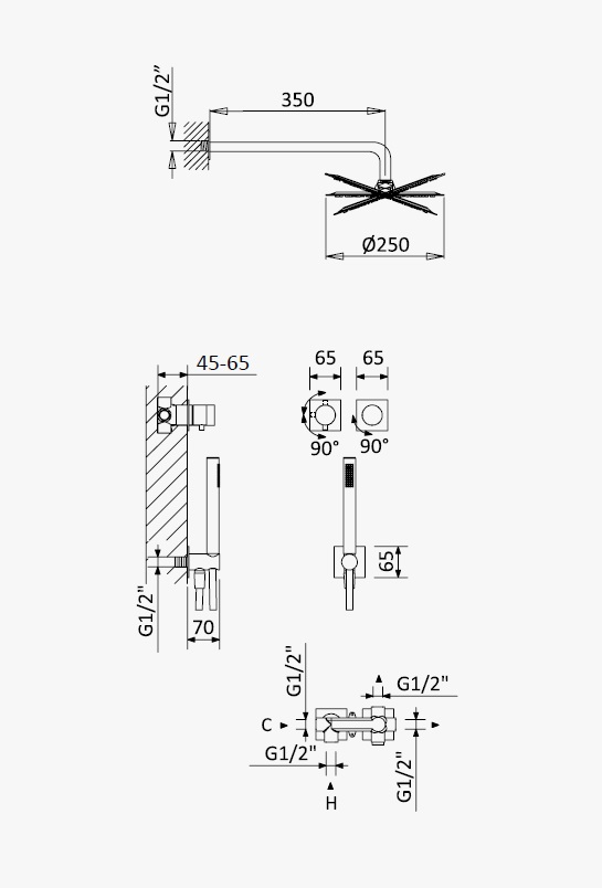 Bateria podtynkowa, ze słuchawką prysznicową typu "patyczek",