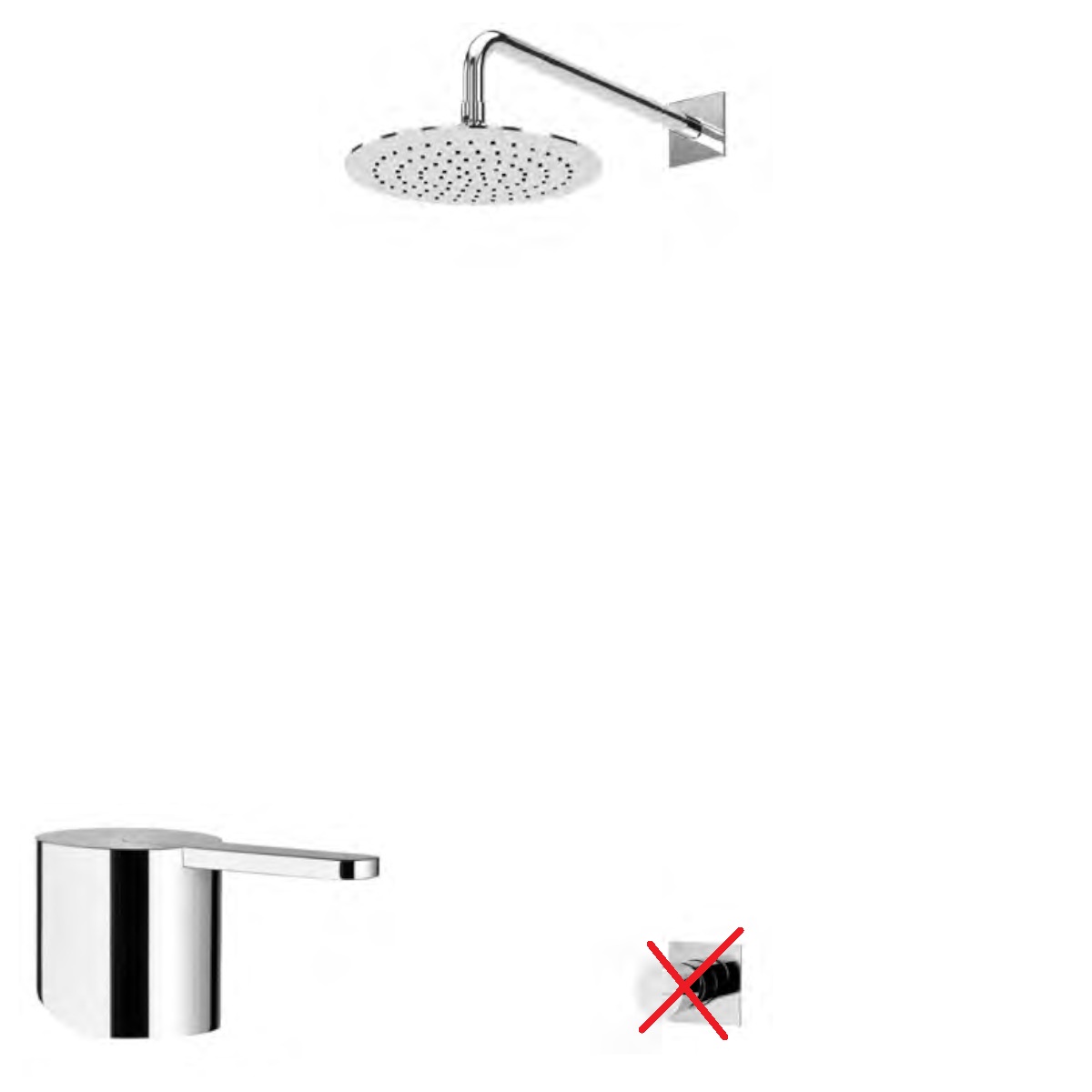 Zestaw natryskowy z deszczownicą, ramieniem, baterią.