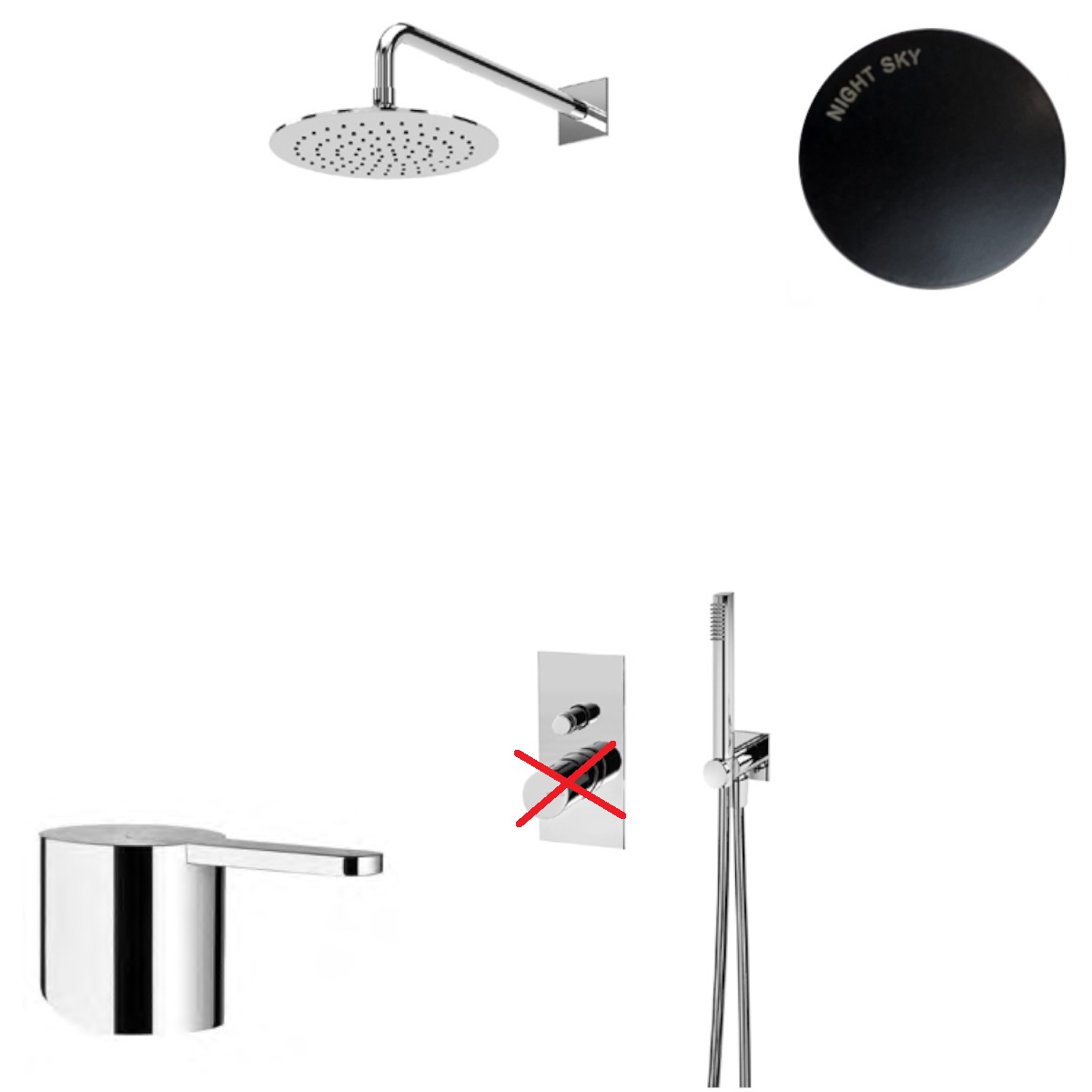 Kopia Bruma Lusa Zestaw natryskowy podtynkowa Ø 250 mm z ramieniem ściennym Night Sky 1017651NS