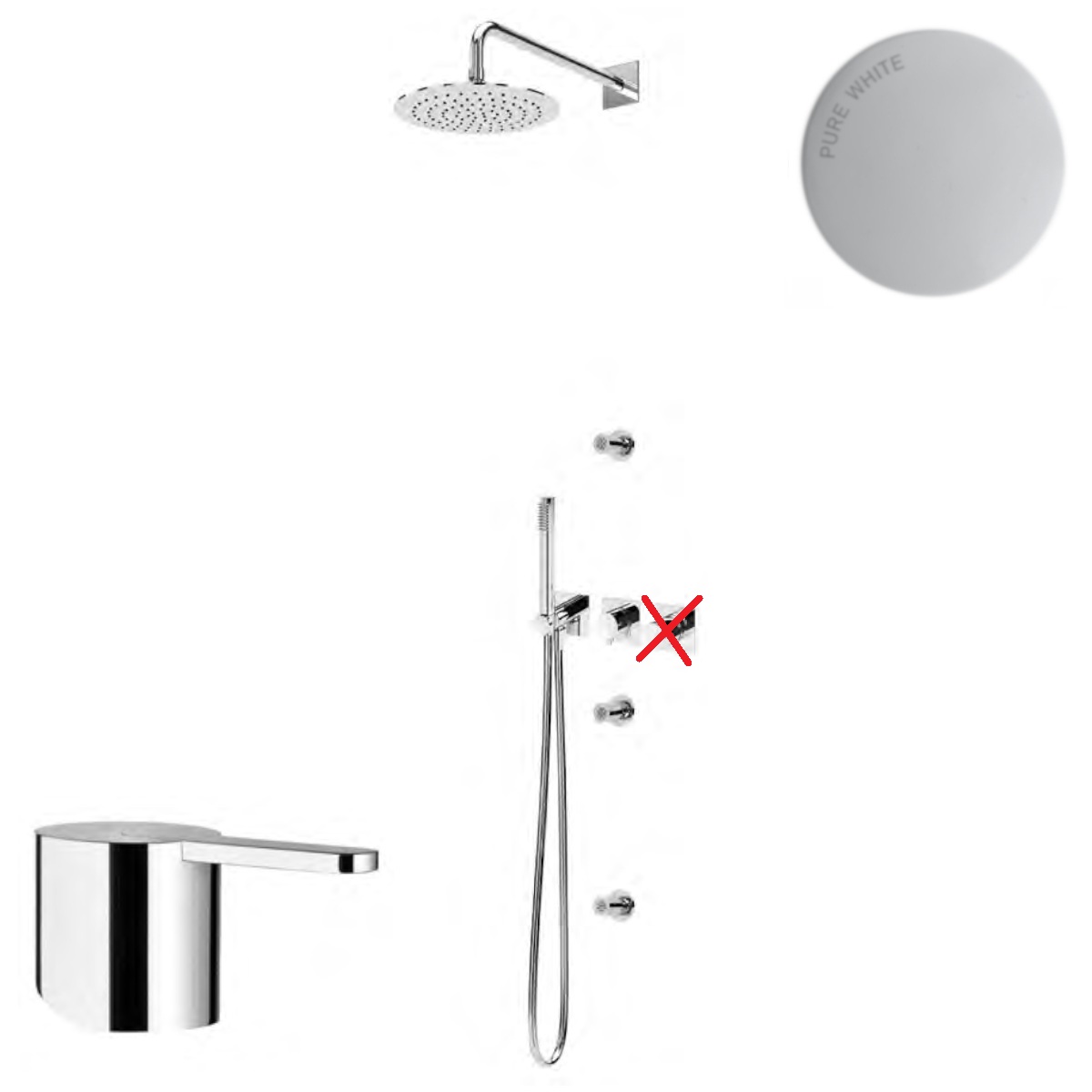 Bruma Lusa Zestaw natryskowy podtynkowa Ø 250 mm z 3 dyszami ściennymi i ze słuchawką Pure White 1017831PW