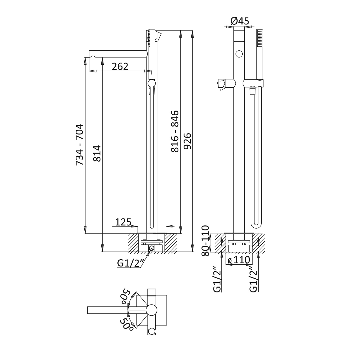 Bruma Lusa Bateria wannowo-natryskowa wolnostojąca Night Sky 1018002NS