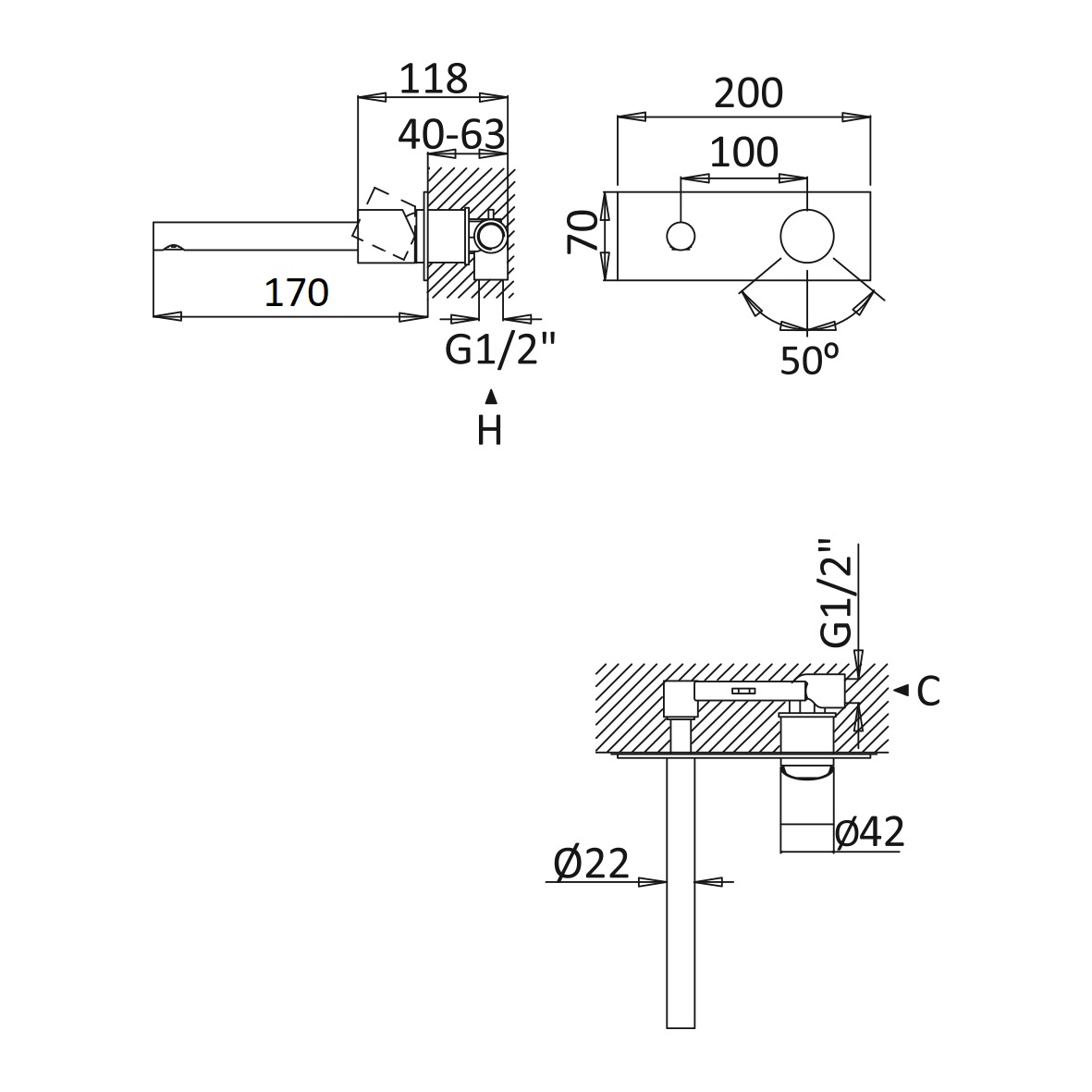 Bruma Lusa Bateria umywalkowa podtynkowa 170 mm Night Sky 1018302NS
