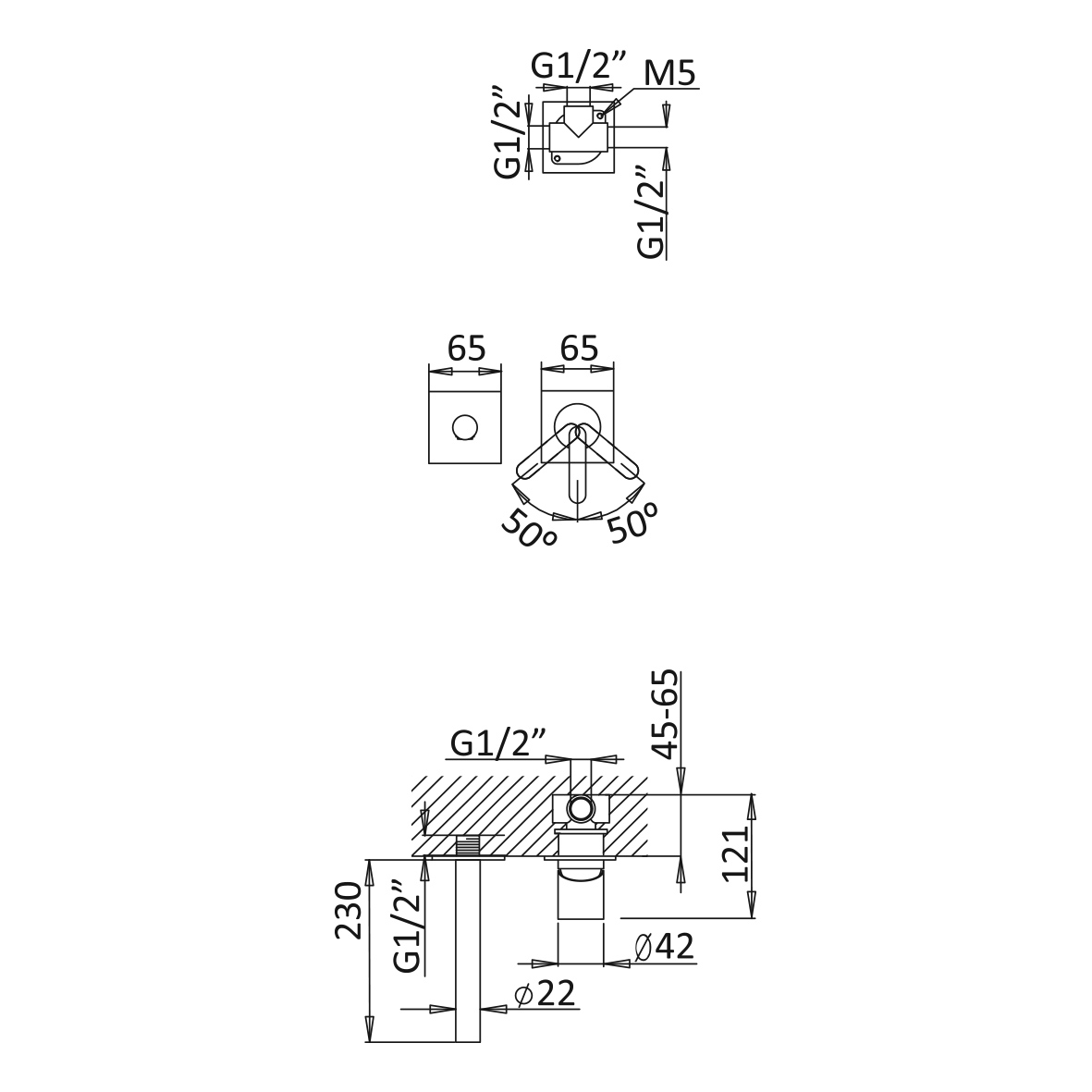 Głębokość montażu: 45 - 65 mm