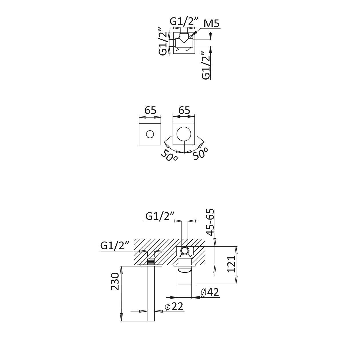 Głębokość montażowa: 45 - 65 mm