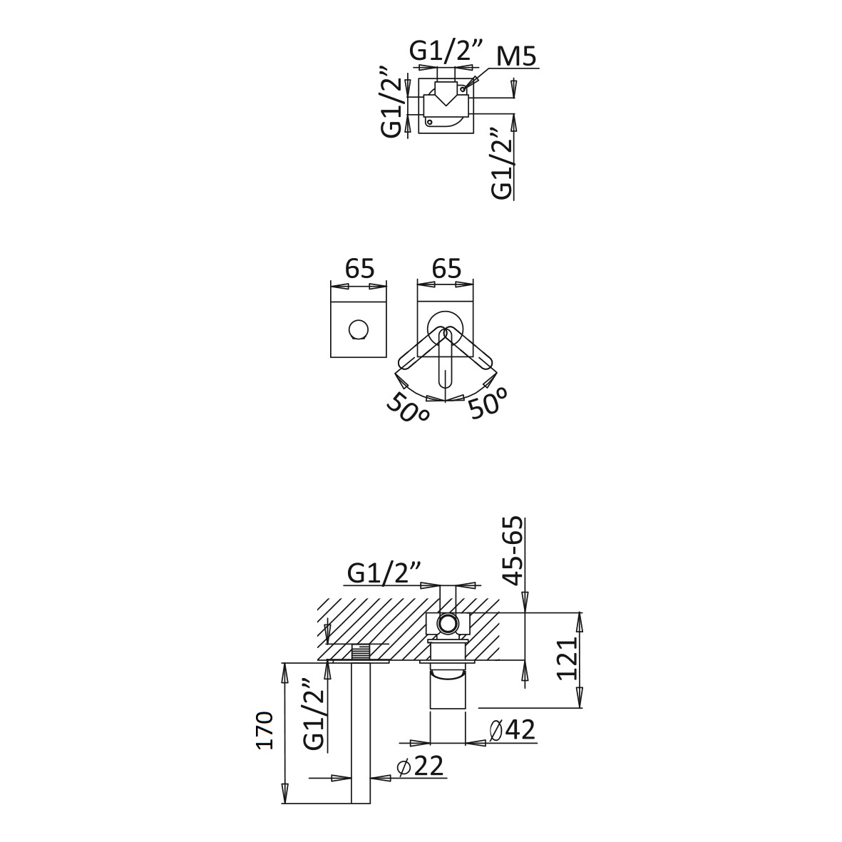 Głębokość montażu: 45 - 65 mm