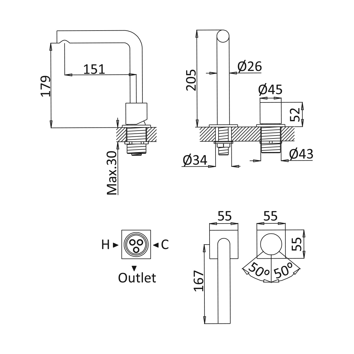 Bruma Lusa Bateria umywalkowa 2-otworowa Sunrise 1018801SR