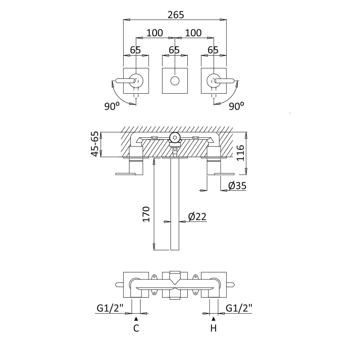 Bruma Lusa Bateria umywalkowa podtynkowa 170 mm Sunrise 1019201SR