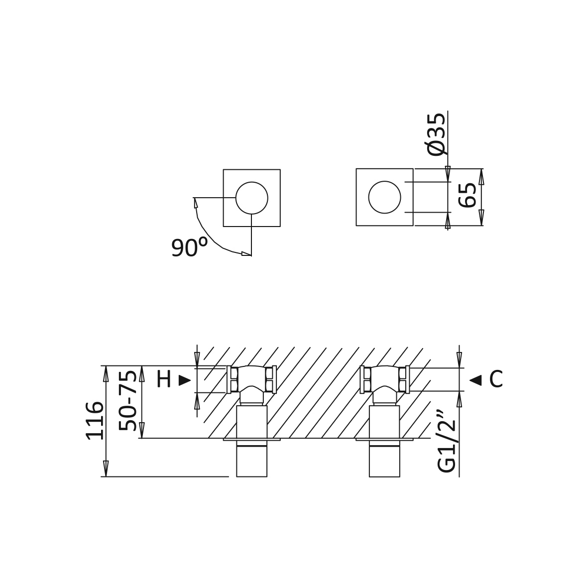 Bateria/zawory z elementem podtynkowym w zestawie,