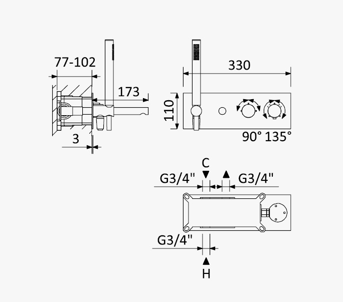 Bateria podtynkowa z elementem podtynkowym w zestawie.