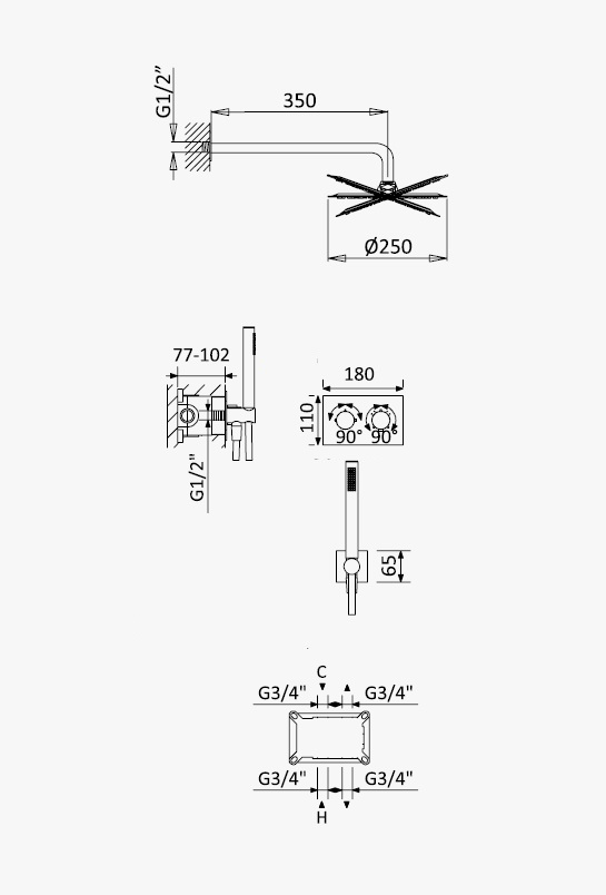 Bateria podtynkowa, ze słuchawką prysznicową typu "patyczek",