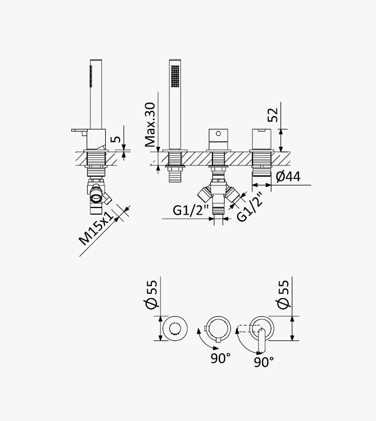 Bateria natryskowa montowana na blacie, z zestawem prysznicowym,