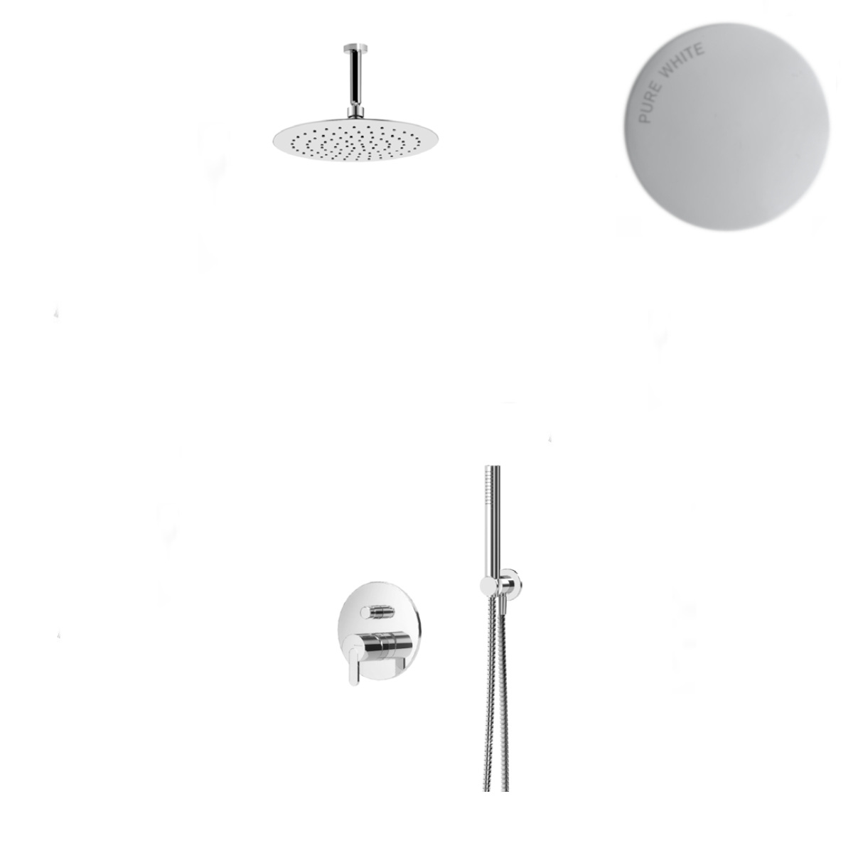 w skład zestawu wchodzi: deszczownica sufitowa, słuchawka , wąż prysznicowy, uchwyt z przyłączem i bateria podtynkowa