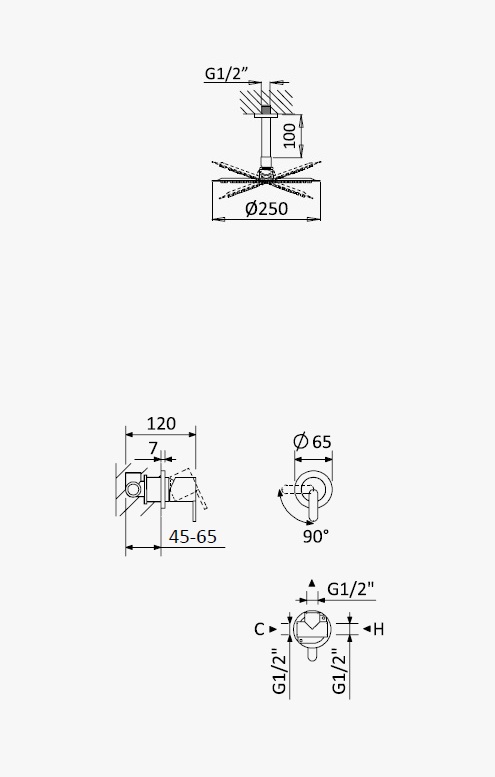 w skład zestawu wchodzi: deszczownica sufitowa i bateria podtynkowa