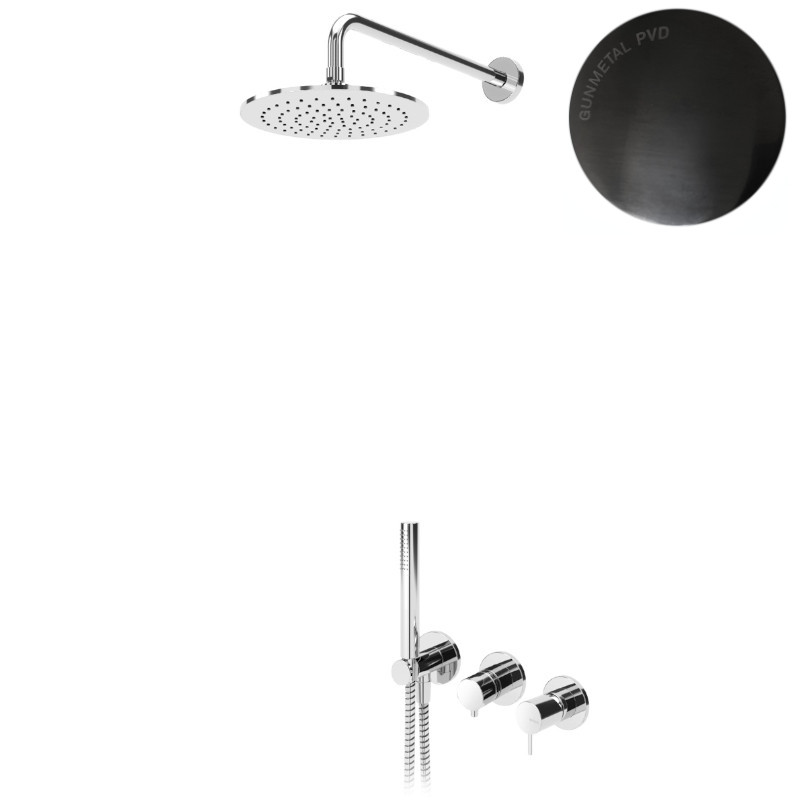 Bruma Leaf2 Bateria natryskowa podtynkowy z deszczownicą Ø25 i zestawem natryskowym Gunmetal PVD 1675722GM