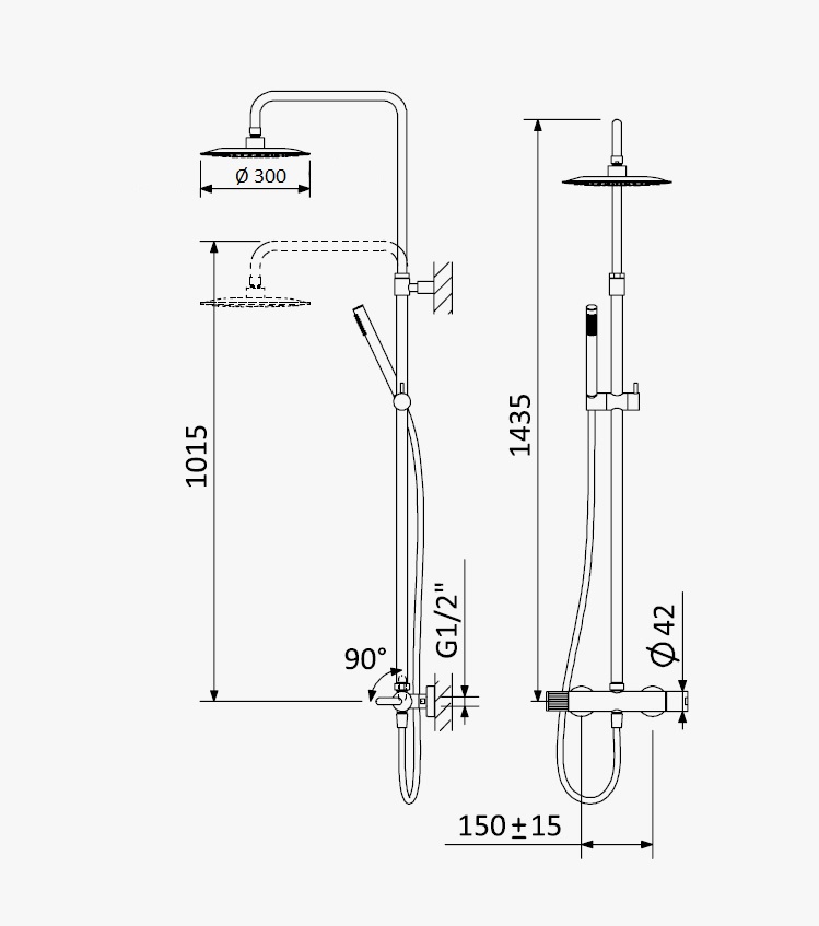 Wysokość ramienia deszczownicy: 1015 - 1435 mm