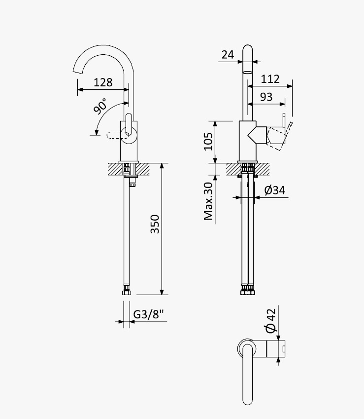Wysięg wylewki: 128 mm