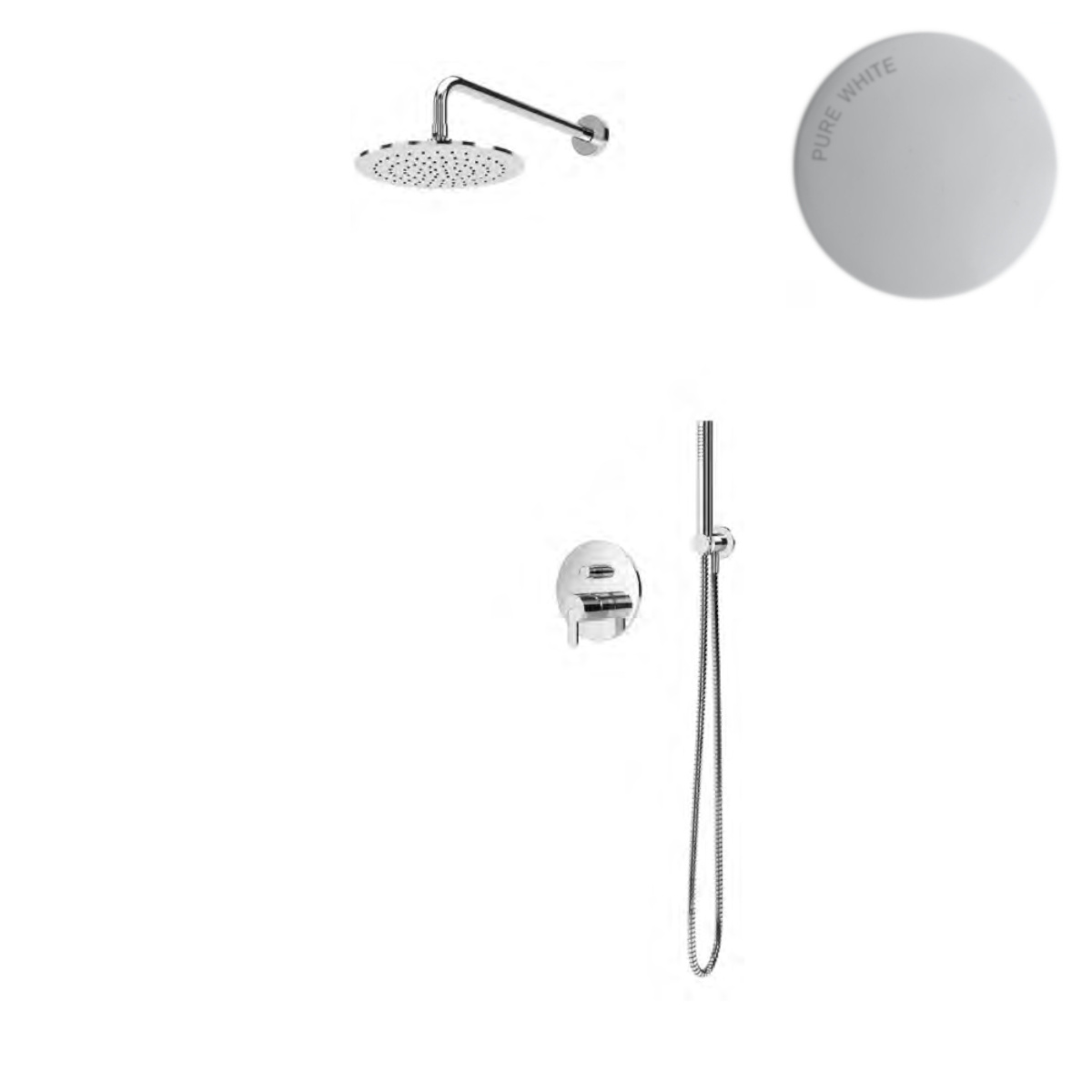 Bruma Leaf Zestaw prysznicowy podtynkowy z deszczownicą ścienna Ø 300 mm i słuchawką Pure White 1677231PW