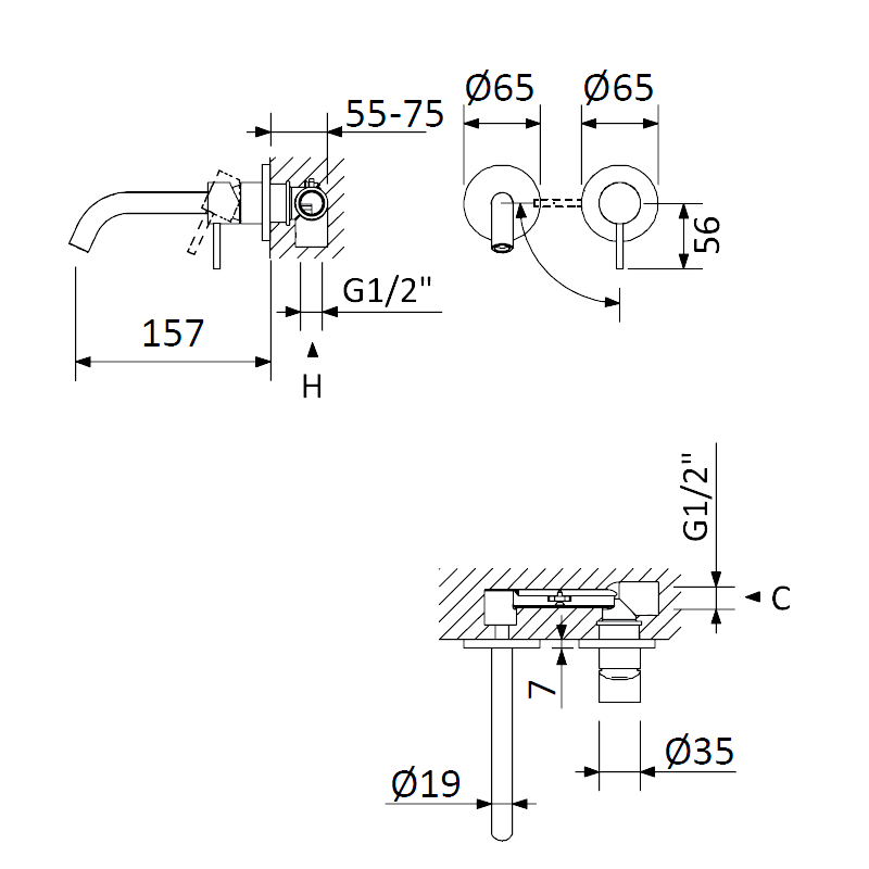 Bruma Leaf2 Bateria umywalkowa podtynkowa 150 mm Sunrise PVD 1670122PR