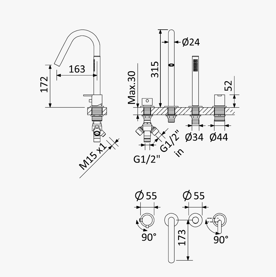Bruma Leaf Bateria wannowo-natryskowa Na brzeg wanny Satinox 1679901ST