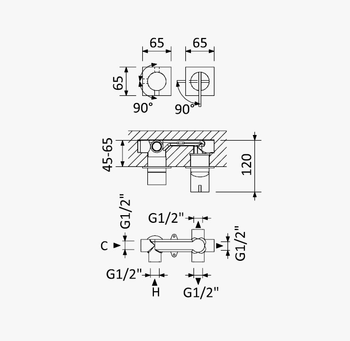 Szerokość rozety: 65/65 mm