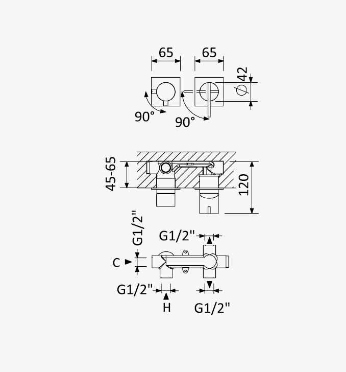 Szerokość rozety: 65/65 mm