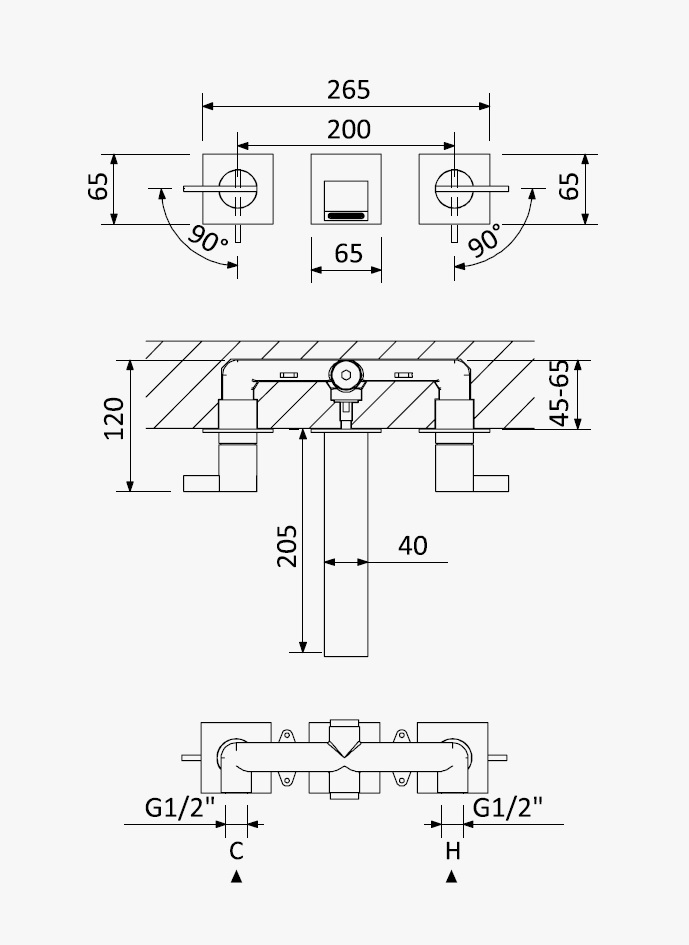 Bruma Breeze Bateria umywalkowa podtynkowa bez korka 3-otworowa Pure White 1682401PW