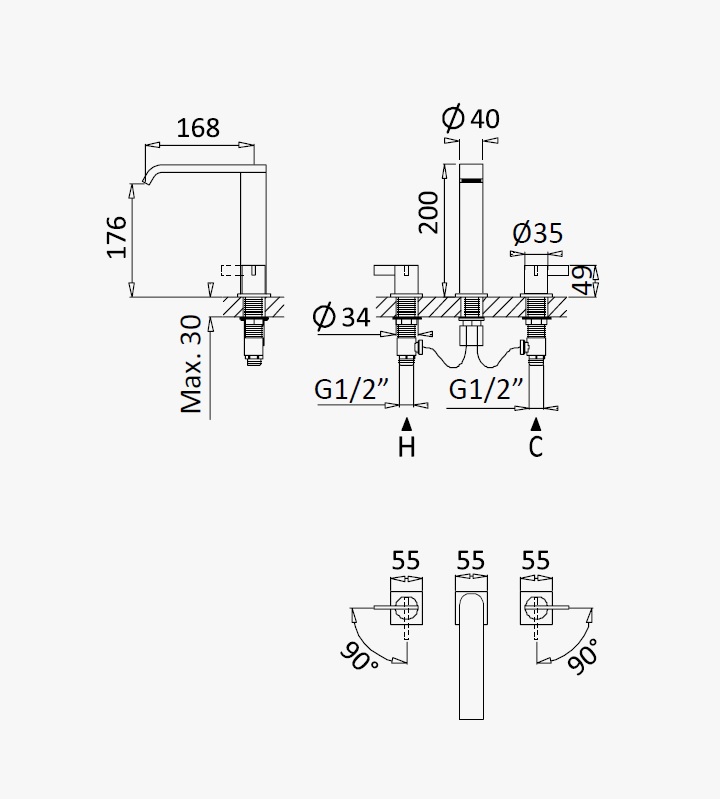 Wysięg wylewki: 168 mm