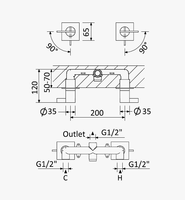Bateria/zawory z elementem podtynkowym w zestawie, bateria do skompletowania z wylewką.