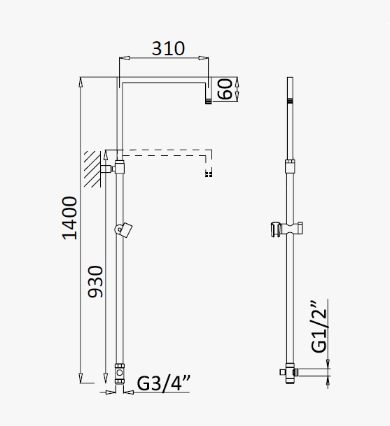 Bruma Quadra Drążek do prysznica z ramieniem do deszczownicy i regulowanym uchwytem na słuchawkę Chrom 1456101CRKolor: Chrom
