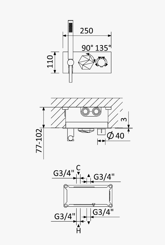 Bateria 2-drożna podtynkowa z elementem podtynkowym